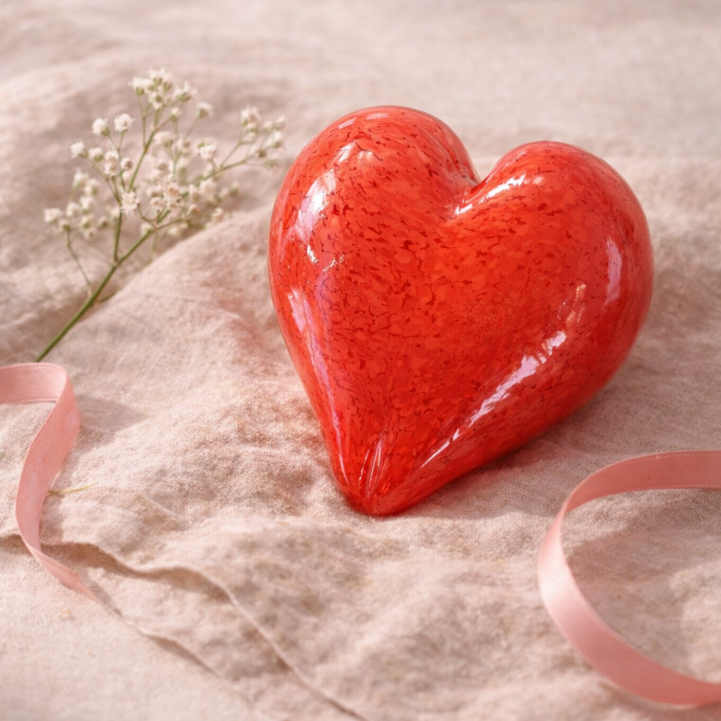 Amokura Glass – Hand-Blown Glass Heart (Bright Red)