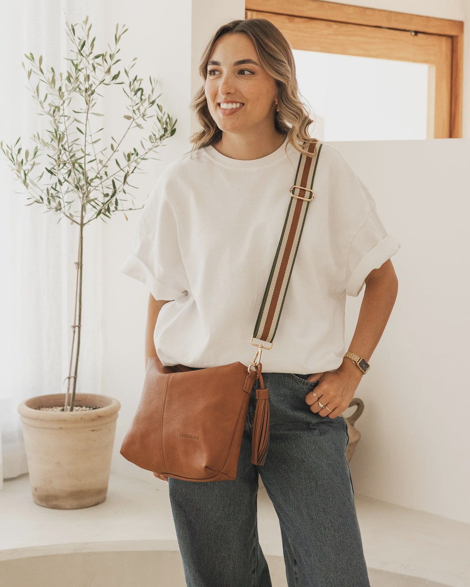 Daisy Stripe Crossbody Bag - Tan