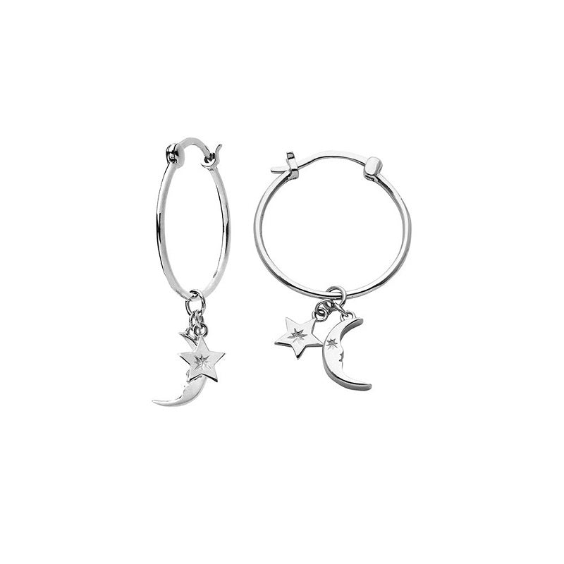 Moon & Star charm Hoop Earrings