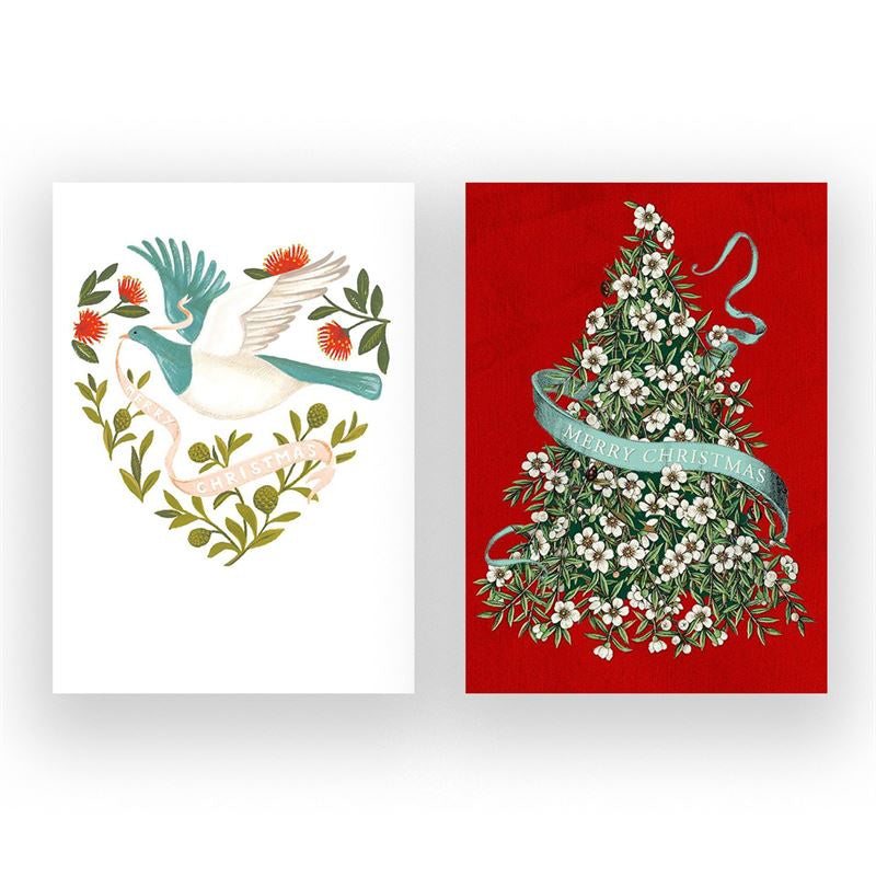 Wolfkamp & Stone - Kereru & Manuka Tree 8 Pkt - Christmas Notecard